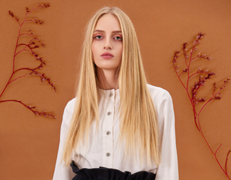 Shirt comes in ecru color, and is made of soft Italian finest wool with silk. The fabric is very well laid out, tight-knit, smooth and pleasant to the touch. Front of the shirt is fastened with jewelry buttons. It has long, wide, puffy sleeves.