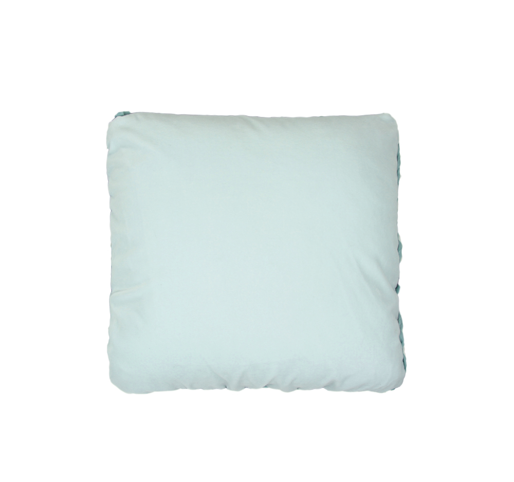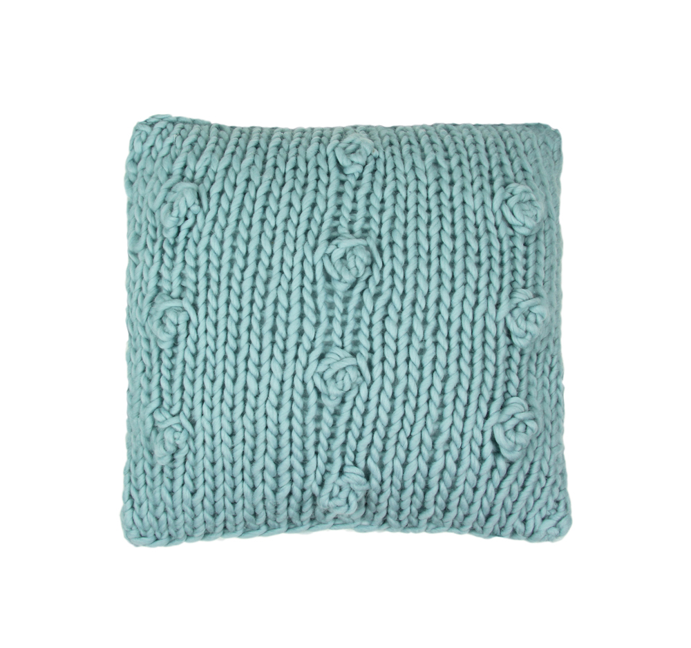 Decorative pillow case made by hand of 100% wool from Peruvian sheep. It is very nice to the touch, soft and thick. The back, and the inside of the front of the pillow case is made of best quality cotton velvet. Model is fastened by zipper. Its mint color and bulky design is a great addition to the Loft style, or Modern Cottage arrangements.