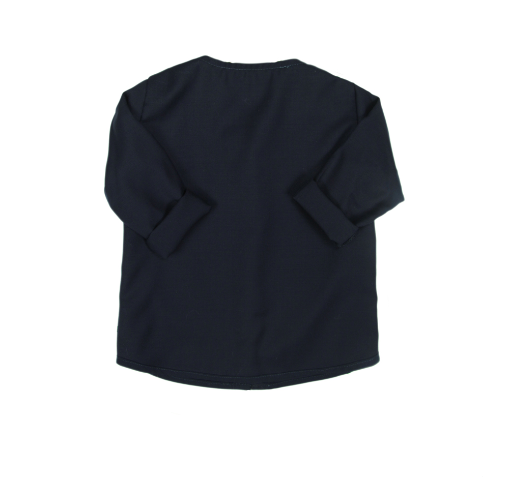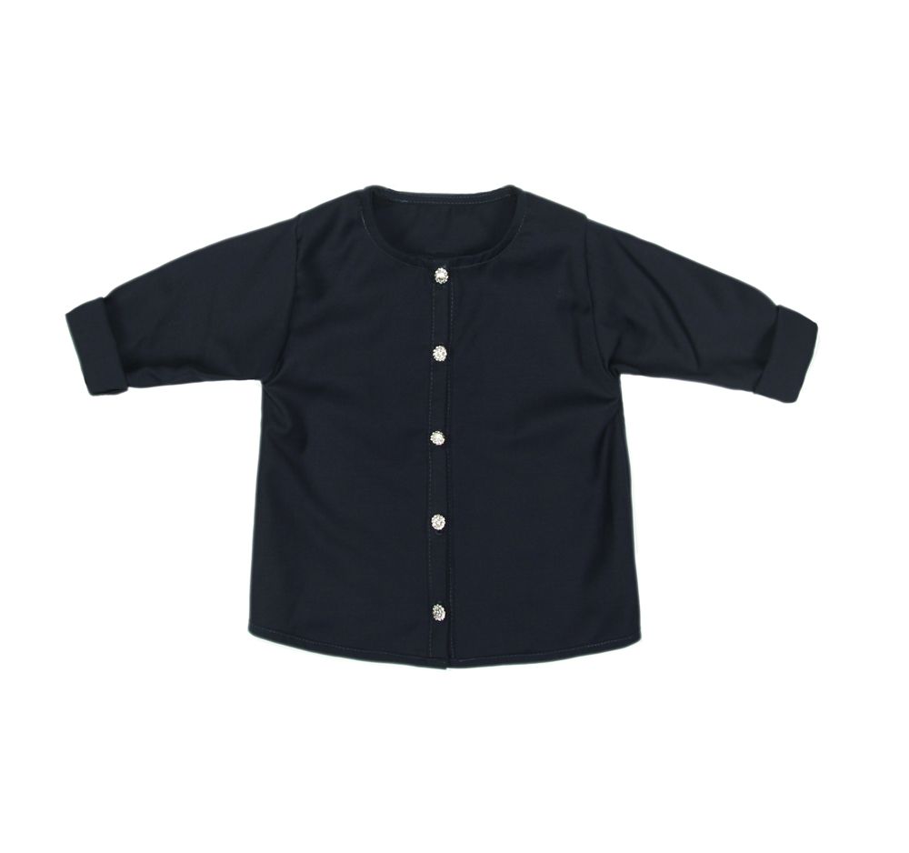 Shirt comes in navy color, and is made of soft 100% Italian finest wool. The fabric is very well laid out, tight-knit, resistant to creases, smooth and pleasant to the touch. Front of the shirt is fastened with jewelry buttons. It has long and straight sleeves. The classic cut of the shirt is perfect for celebrations or Holidays.